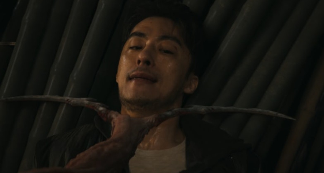 마트 직원으로 오토바이를 타고 퇴근을 하던 가운데 수인에게 앙심을 품은 진상손님은 교통사고를 내고 수차례 칼에 찔리지만 쓰려져 있는 수인 앞으로 떨어진 생물의 포자 유충이 수인의 귓속으로 들어가고 오른쪽 얼굴에서 안착하여 살아가게 됩니다.