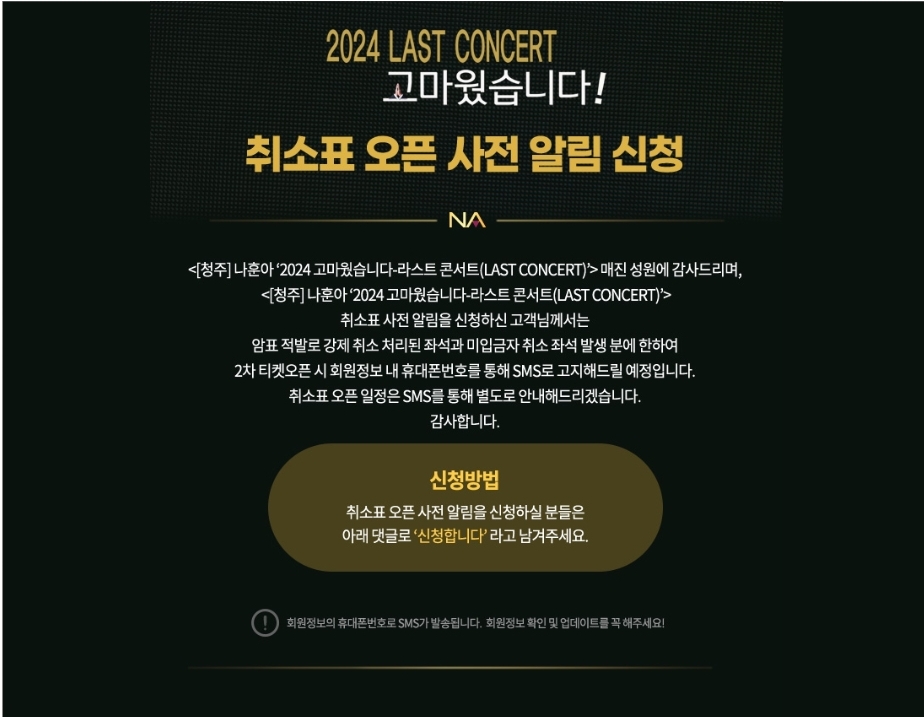 2024 나훈아 인천 콘서트 티켓 예매 오픈이 되자마자 3분 만에 전석이 매진되었다고 합니다. 하지만 무통장 입금 미결제분과 암표로 나온 취소표가 많을것으로 예상됩니다. 추가 티켓 예매일정이 공지되었고 취소표를 구할 수 있으니 수시로 들어가 확인해 보시길 바랍니다.