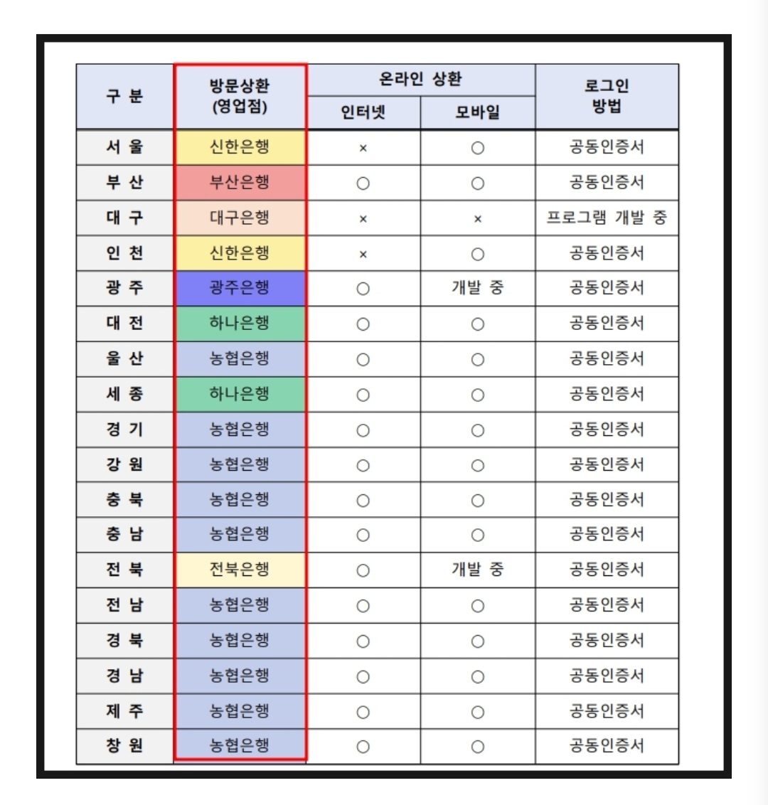 전국 18개 시도 중 온라인 상환 은행이 상이합니다. 참고해 주세요.