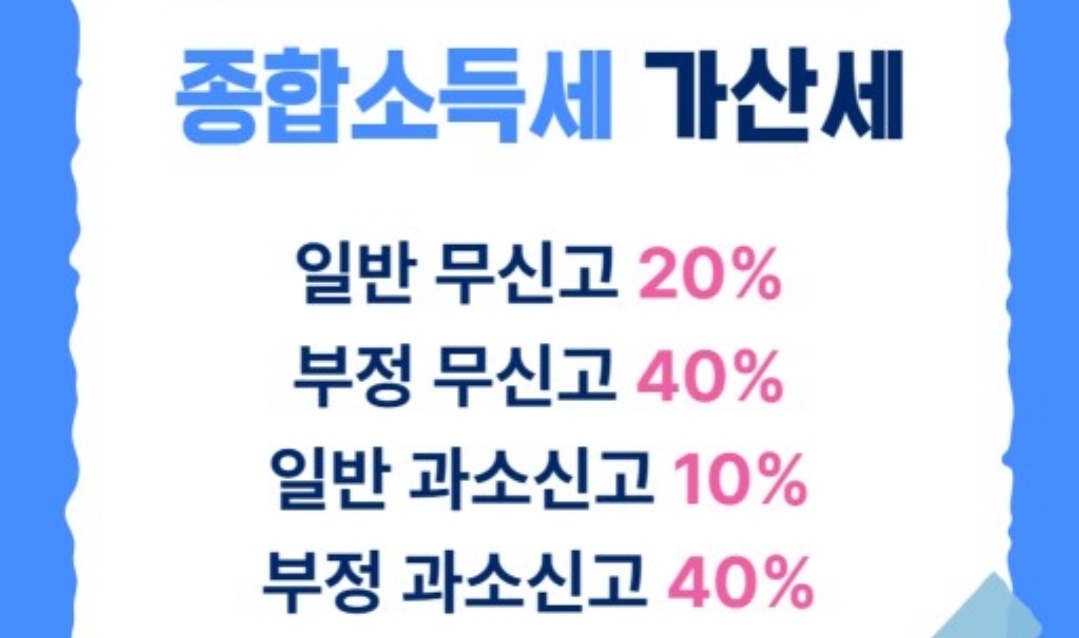 이와 같이 종합소득세를 신고하지 않으면 여러가지 불이익을 받게되니 반드시 신고기간 내에 종합소득세 신고를 하셔야 합니다.